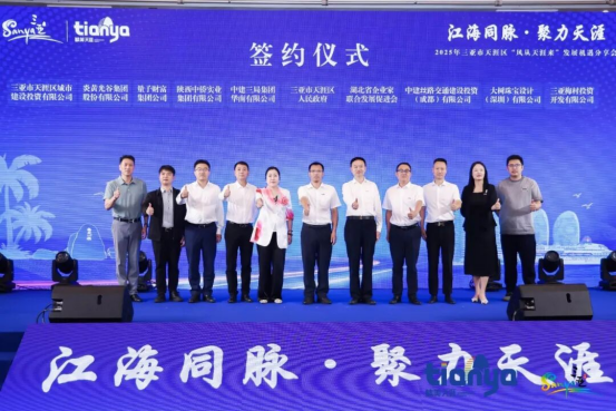 ▲2025年三亚市天涯区“风从天涯来”发展机遇分享推介会上,天涯区与多家企业签约。