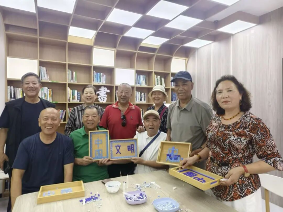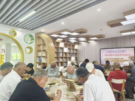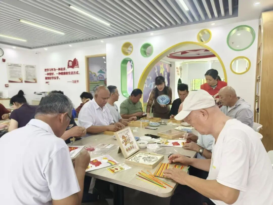 老同志们化身“镶嵌艺术家”,用镊子小心翼翼地夹起五彩斑斓的水晶片,蘸取胶水,在果盘坯体上精心构思、耐心拼贴。指尖流转处,原本朴素的素坯被点点星光点亮,幻化为独一无二、流光溢彩的艺术果盘。活动现场笑语盈盈,大家在展示作品的同时,也畅聊着对新一年的美好期盼,温馨与成就感洋溢在每个角落。