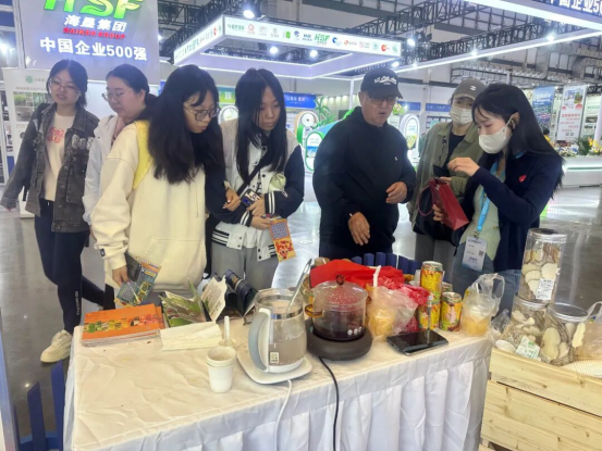 一步入展馆,舌尖先被“天涯”俘获:天涯野生蜂蜜,天涯紫山药,高峰土鸡蛋,天涯野生芭蕉,羊栏芋香红米,虎乳灵芝,钦蜜九号百香果,冬蜜凤梨,天涯红心木瓜,黎家山柚油,海沙地瓜……多款国家地理标志和区域公用品牌产品列阵排开。